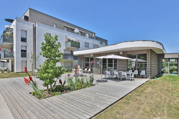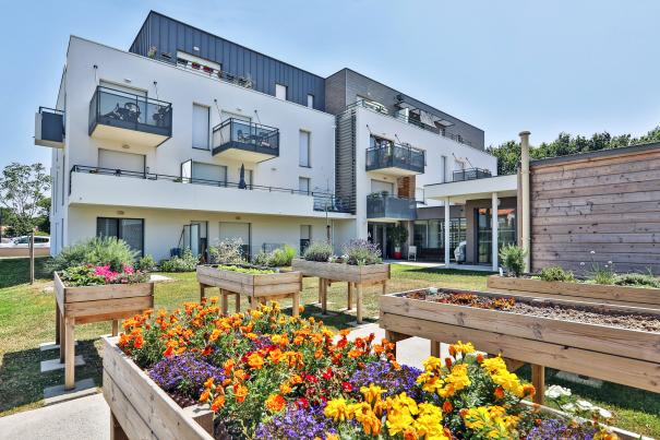 Dans cette résidence, les seniors ont accès à un potager partagé, un boulodrome et des espaces de vie extérieurs arborés.